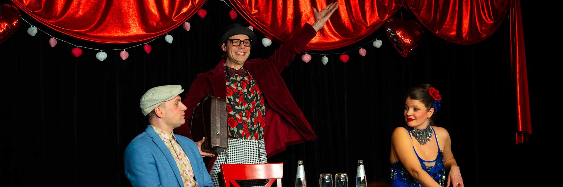 Genießt in gemütlicher Atmosphäre vor jeder Vorstellung erfrischende Getränke und köstliche Weine aus dem Rheingau. Für das leibliche Wohl ist gesorgt mit einer Auswahl an frisch zubereiteten süßen und salzigen Crêpes. Ihr werdet bedient von den Schauspielerinnen und Schauspielern unseres Theater-Ensembles, die sich sehr über euren Besuch freuen.